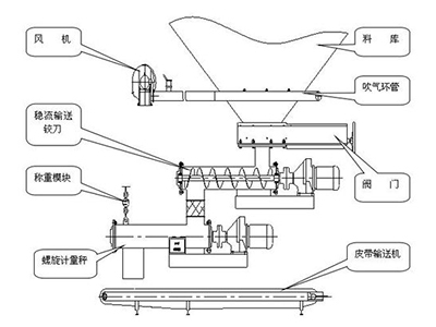 (5)穩(wěn)流給料螺旋和計量輸送螺旋之間為軟連接,可根據(jù)現(xiàn)場要求任意調整水平安裝角度。
